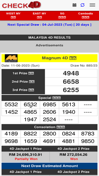 Live 4d Results Magnum 4d Sports Toto Jackpot Damacai